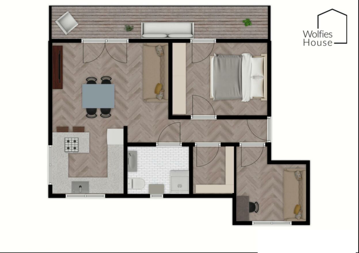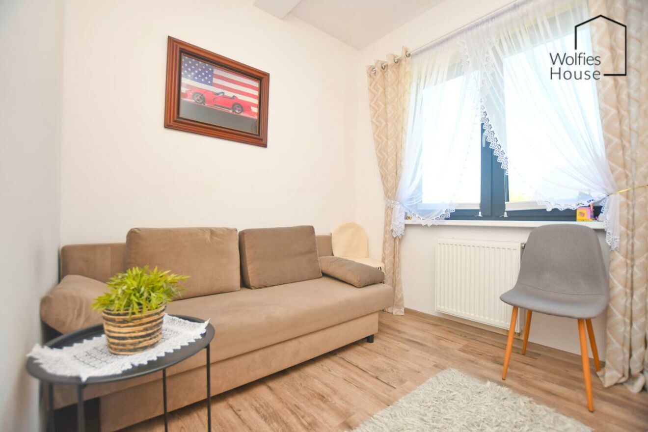 Wolfies House ma przyjemność zaprezentować mieszkanie, położone w zielonej i cichej okolicy na pograniczu Krakowa i Wieliczki.Mieszkanie znajduje się na pierwszym piętrze kameralnego budynku a jego metraż to 51 m^2, na co składają się: