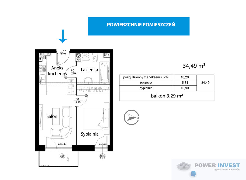 Powierzchnia nieruchomości to prawie 35 m2 i składa się na nią: